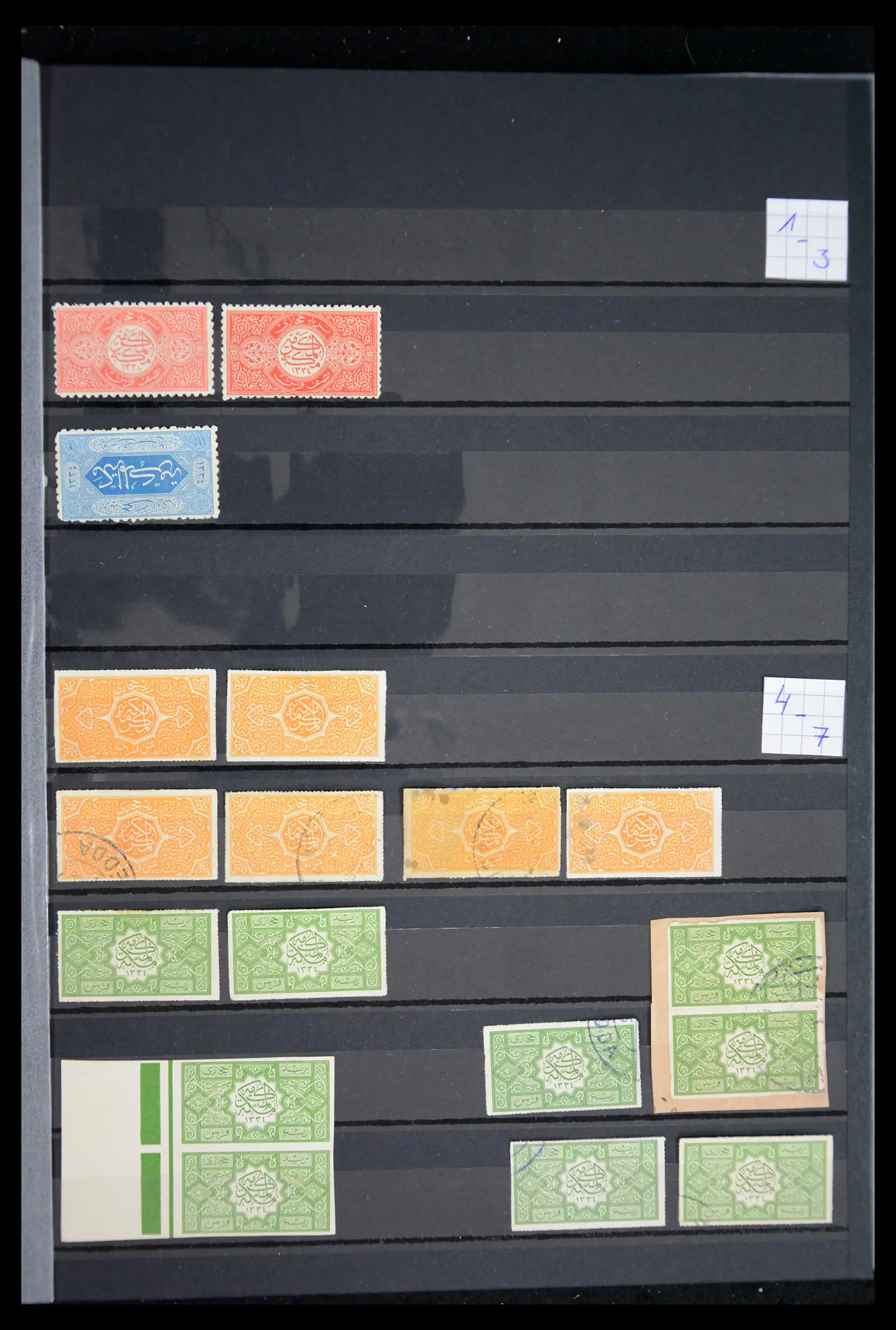 Great mint/mnh/used collection with duplicates of Hedjaz, most of the expensive items present, partly more than once, also good varieties: inverted overprints, double overprints, overprints in the wrong color etc. etc. Also postage dues, in stockbook. Very valuable collection!!