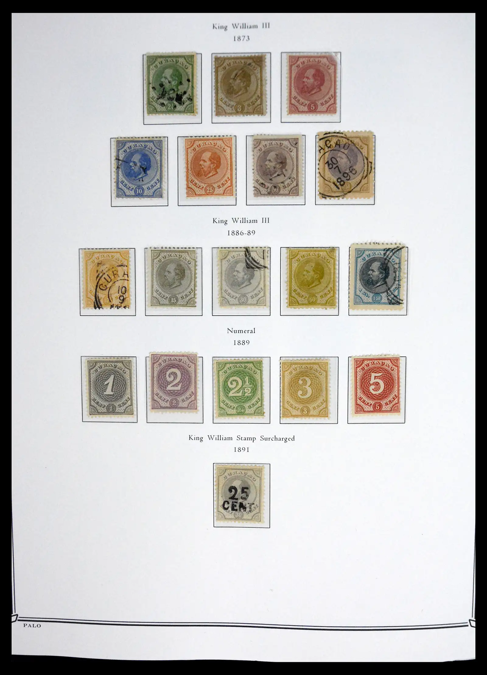 Nearly complete very wellfilled collections of Curaçao, Netherlands Indies and Surinam, all near completion in mainly very good condition, also powerful back of the book, housed in 2 expensive American Palo albums + slipcases. Great collection with very many expensive stamps, massive catalogue value!!