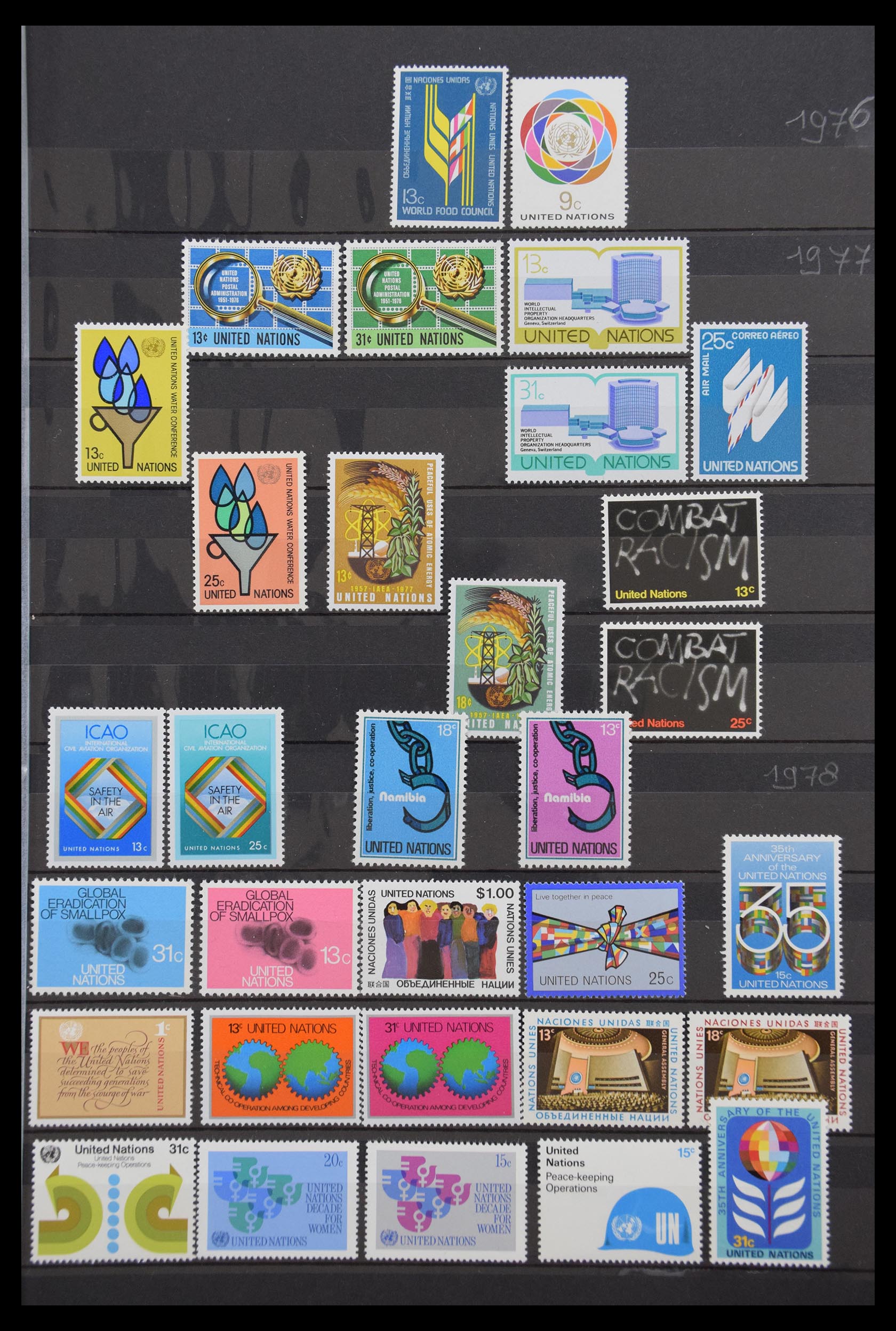 Almost complete, MNH stampcollection United Nations 1976-2016 New York and Geneva including souvenir sheets in 2 stockbooks. Also many cancelled duplicates present. Very high catalogue- and face value!