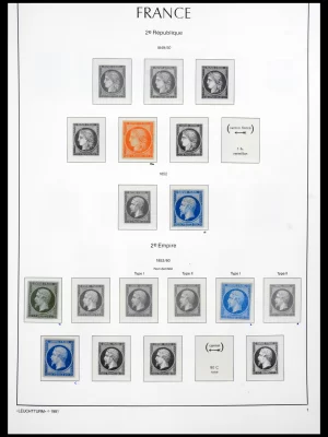 £13,500Fantastic mint, mostly even mint never hinged quality collection including so many expensive classics in mainly very good condition, including 1849: 40c, 1852: 25c, 1853/60 imperfs 1c, 20c, 25c, 1862/70 perforated values up to 5 franc(!), 1870/71: 10c, 20c, 1870/71 bordeaux issues to 80c, 1871/75 to 80c, extensive peace and commerce including many key stamps, from 1900 for 99% complete collection with sheetlets, back of the book very strong including bloc 1/3, airmails 1/2, both 50fr stamps, postage dues including many very expensive stamps, pre-cancelled etc. etc. housed in 8 expensive red Lighthouse albums with slipcases. Supercollection with a gigantic catalogue value!!