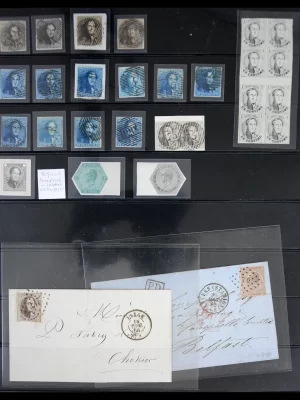 £550Wonderful classic collection including wide margined nr. 1(4x) and 2(10x) including cancellations, 1c proof in black in gutterbloc of 8, other proofs and imperfs, also 2 nice covers, on stockpage. Sweet little lot!
