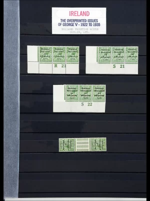 £1,600Beautiful specialised lot of Ireland 1922-1935 overprints, containing MNH, mint hinged and used material, including cover and cards, on stock cards in box, most stamps clearly described and bought as individual auction lots. Includes better items such as (Hibernian no’s): 123-14*, 14*, 16* with inverted overprint, 40*, 68, various plate flaws etc. Nice lot!