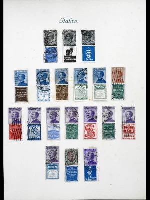 £900Complete used collection of stamps with advertising labels, values from 15c to 1 lire in good condition, all key stamps present, on albumpage. Sassone catalogue value 10.400 EURO!!