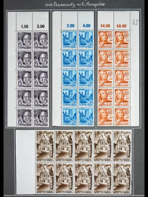 £3,750Incredible overcomplete mint never hinged supercollection including all key items, also the Urdruck overprint set mnh and signed, many issues in blocs of 4 and/or in gutterpairs, the scarce sheetlets multiple present, in album with descriptions. Seldom seen such a pretty and valuable Saar collection!!