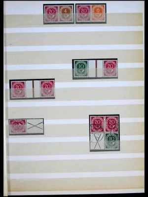 £750MNH, mint hinged and used, partly double stamp collection Bundespost 1945-1976, including good stamps such as (Michel no’s): 111-112*, 113-115*, 117-120, 123-138** (!, posthorn set MNH), 139 -140*, 141-142*, 143-146*, and also British American Zone, in which 52-68 I **/* (band overprint), 52-68 II**/* (net overprint), in Borek album.