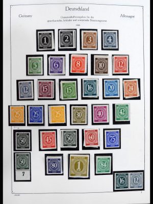 £1,400Well filled, mainly MNH stamp collection Germany 1945-1969, containing good stamps such as (Michel no’s): British American Zone 52-66 I** (band print), 52-66 II** (net print), I/I-IX/I** (band print), I/II-IX/II** (net print), Bundespost 111-112**, 113-115**, 116**, 117-120**, 121-122*, 123-138** (posthorn set), 139-140**, 141-142**, 143-146**, combinations W 1-3**, WZ 1-4**, S 1-12**, etc. in Lindner album.
