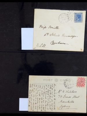 £2,500Beautiful collection of covers and cards from Australian States 1863-1909 in 2 albums, in which beautiful frankings, destinations, good cancels (including Queensland 1 penny on card with cancel 626 (Ipswich, RRRR), Victoria 6 penny on letter to London with cancel 51 ( Horsham, RRRR)) etc.