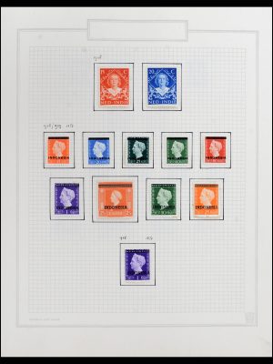 In the mainnumbers complete mint/used/mint never hinged collection including all the expensive early sets like the 1949 overprint set to 25 guilder, the temple set to 25 rupiah and the RIS overprint set, also the sheetlets including the scarcer issues present (no BOB present), in 3 expensive Davo de Luxe albums + slipcases. Enormeous catalogue value!!