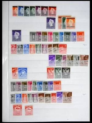 Extremely extensive, MNH, mint hinged and used stock Indonesia 1948-2018, including all good sets such as overprint set 1948, temple set, Ris and Riau overprints, many misprints and imperforate stamps, etc. in 3 thick stockbooks.