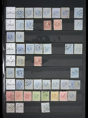 £1,000Collection of 1,500+ stamps with many numerical cancellations, smallround and long bar cancels, including many beautiful and scarce cancels, on pieces, etc., in 2 thick stock books.