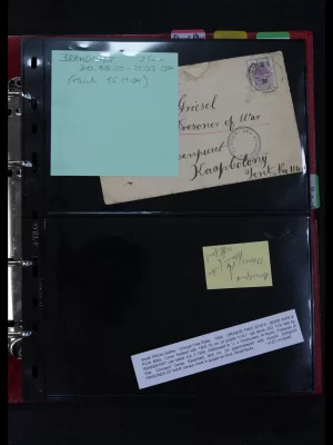 £1,400Wonderful collection of approx. 240 covers and postcards, including POW, Boer War, beautiful frankings, cancellations, destinations, censorship, etc. Vey many scarce and rare covers present, in 2 albums.