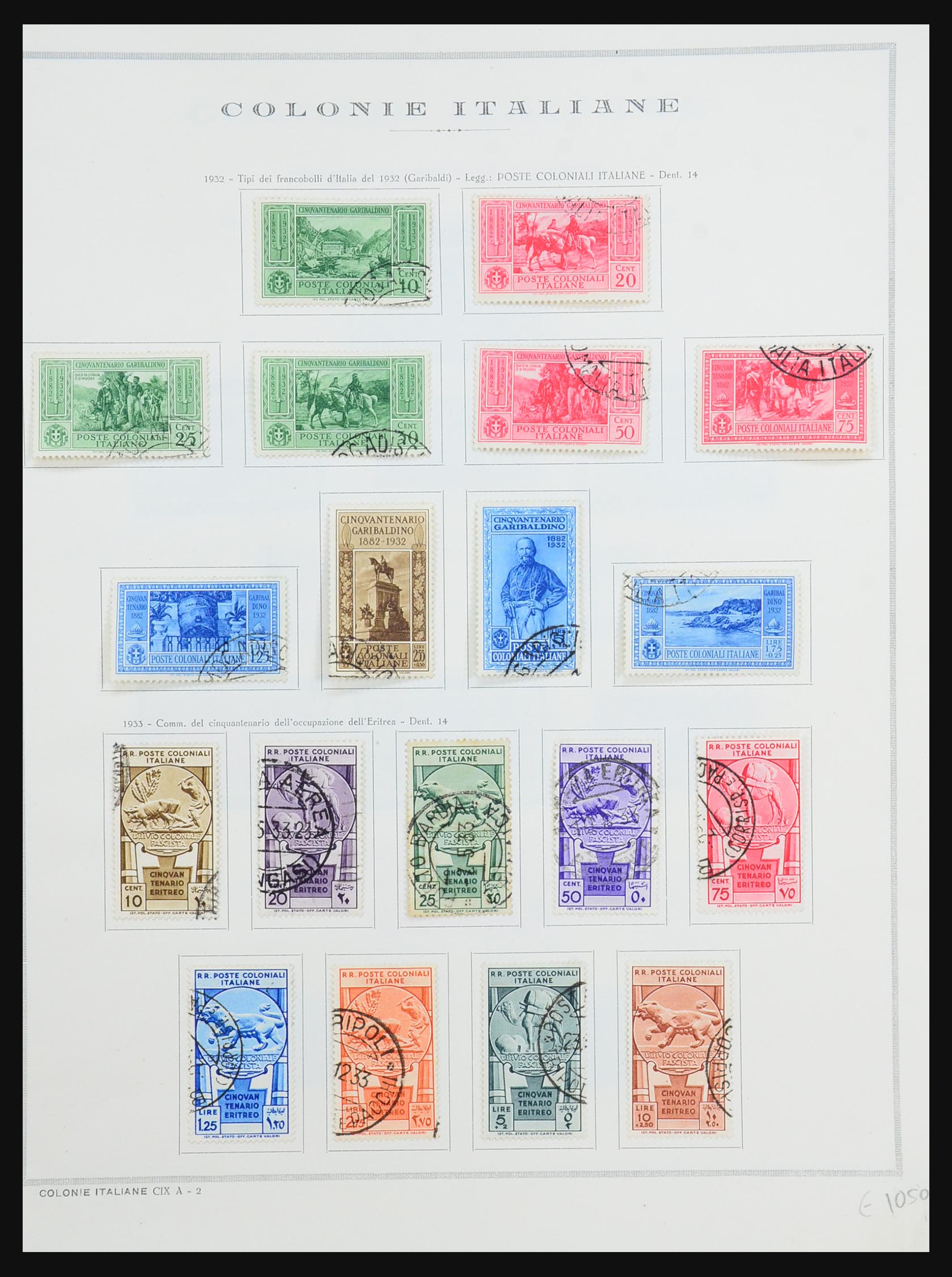 Complete, cancelled stamp collection general issues Italian colonies 1932-1934 on albumpages in folder, in which e.g. (Sassone no’s): 1-10, 11-22, 23-31, 32-41, 46-50 (football, cat. € 1400), airmail 1-7, 8-13, 14, 15-21 (cat. € 750), 22-2930, 31-37 (football, cat. € 1400), etc. Catalogue value over 6900 euros.